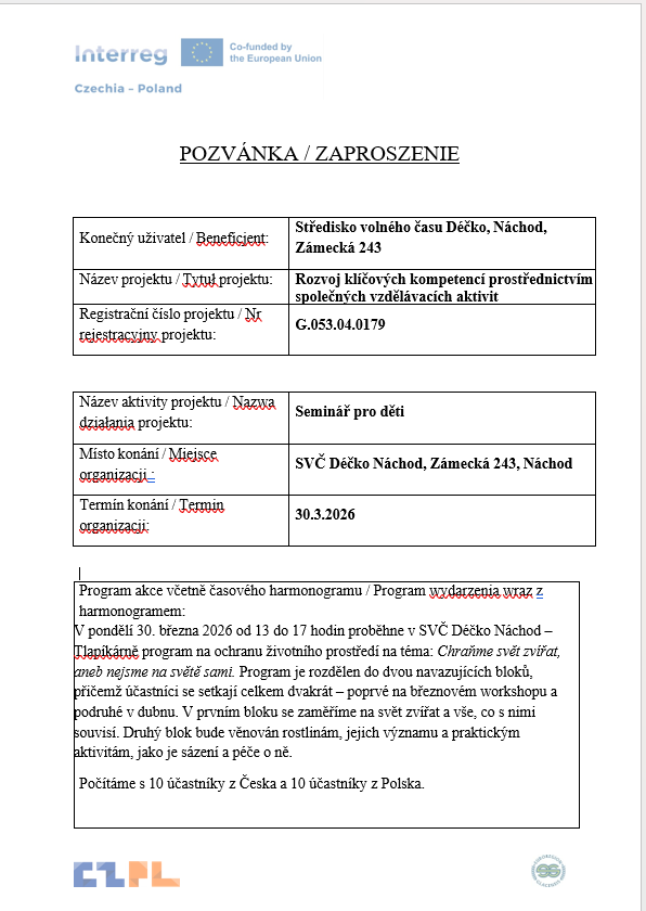 V pondělí 30. března 2026 od 13 do 17 hodin proběhne v SVČ Déčko Náchod – Tlapíkárně program na ochranu životního prostředí na téma: Chraňme svět zvířat a rostlin, aneb nejsme na světě sami.